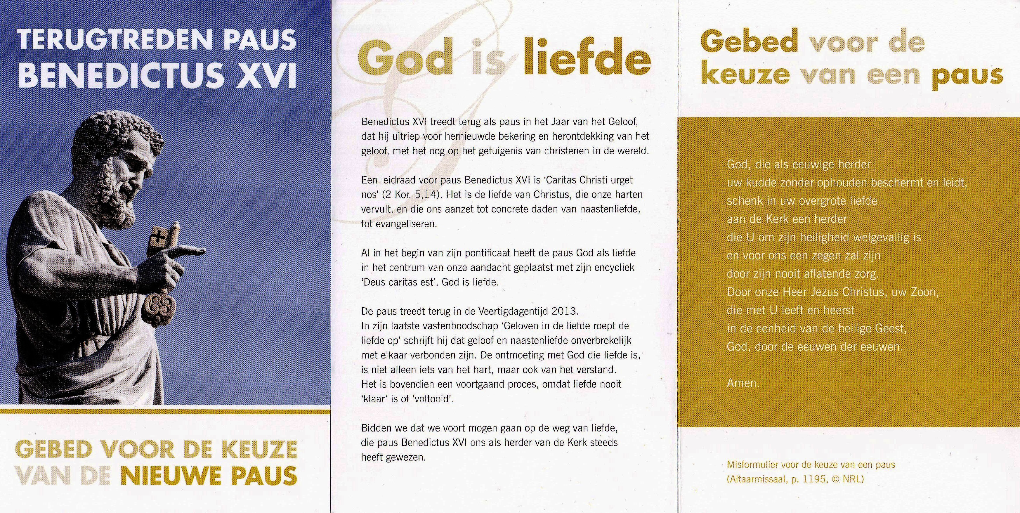 feb 27 Gebed voor de keuze van de nieuwe paus Standaard Gebed voor de keuze van de nieuwe paus 50.908274 6.028849 Dit delen: Klik om te delen op WhatsApp (Opent in een nieuw venster) WhatsApp Vind-ik-leuk Aan het laden...