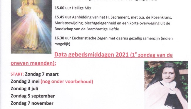 Data gebedsmiddagen 2021 (1e zondag van de oneven maanden):